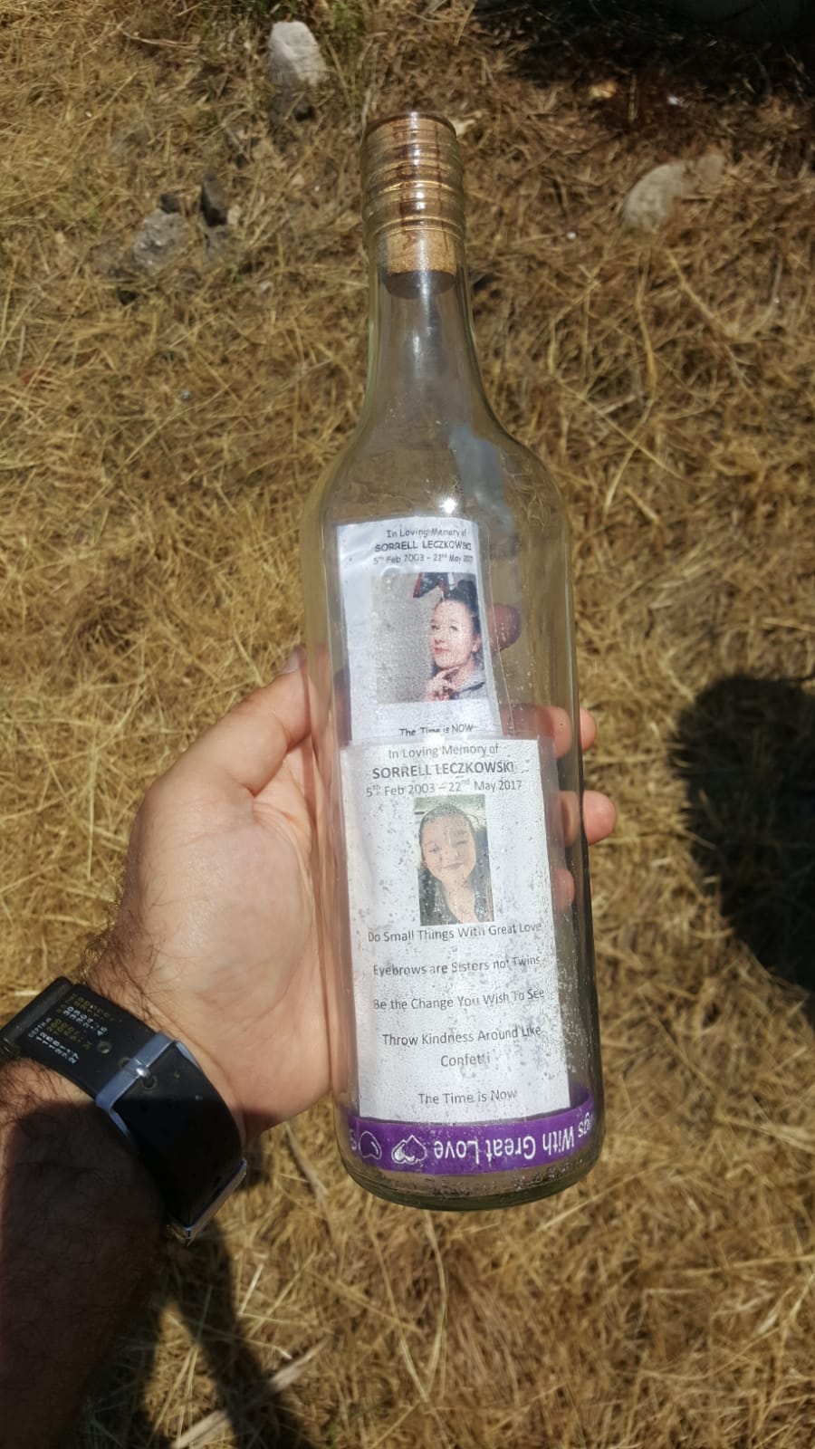 Dal Regno Unito la bottiglia ha raggiunto, intatta, il Salento, per poi essere ritrovata sulla riva di Torre Vado, marina di Morciano di Leuca. Custodisce tutto l’affetto e il dolore di una mamma, quel senso di inquietudine per una perdita ingiusta, improvvisa, tragica. L’amministrazione ha scelto di invitare la donna sul posto per restituirle quel messaggio e darle un segnale di speranza, quello che da tempo aspettava.