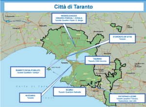 I gruppi malavitosi si spartiscono la città di Taranto in base a rioni e quartieri, con la città vecchia in mano ai Pizzolla e Taurino; Paolo VI e Borgo dominio dei Ciaccia e Modeo, ma anche dei Diodato; i Tamburi culla dei Sambito; Salinella degli Scarci, mentre i clan Catapano e Leone sono presenti nei quartieri di Talsano, Tramontone e San Vito.