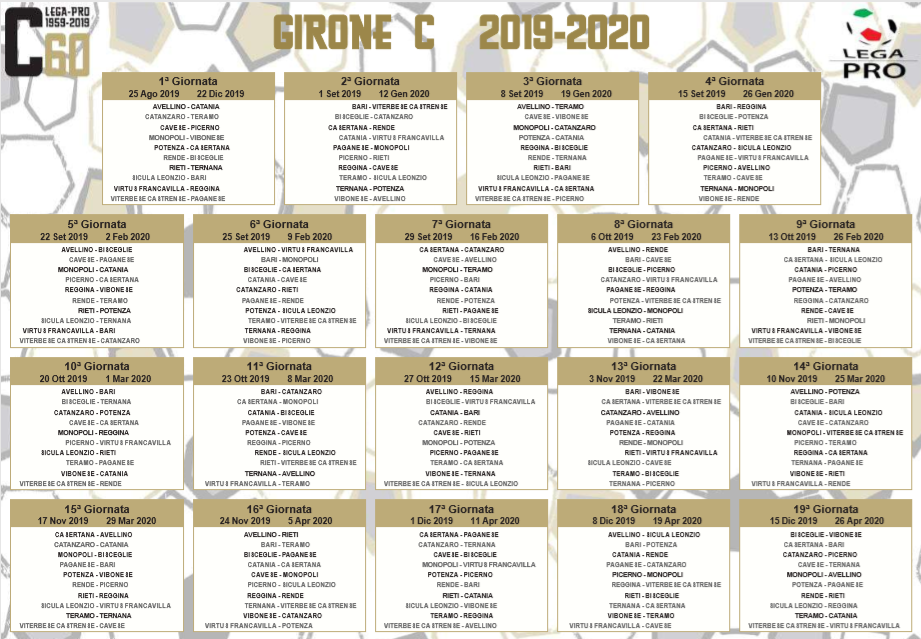 Serie C: esordio in casa per la V.Francavilla. All’interno il calendario completo