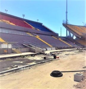 La tavolozza c’è, i colori sono il giallo e il rosso e un pizzico di blu chiaro, lo stadio leccese si prepara a svelarsi più bello e più colorato per una stagione piena di emozioni.