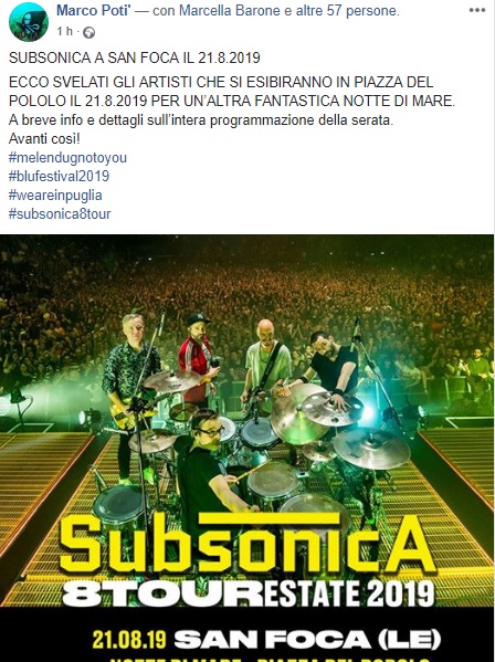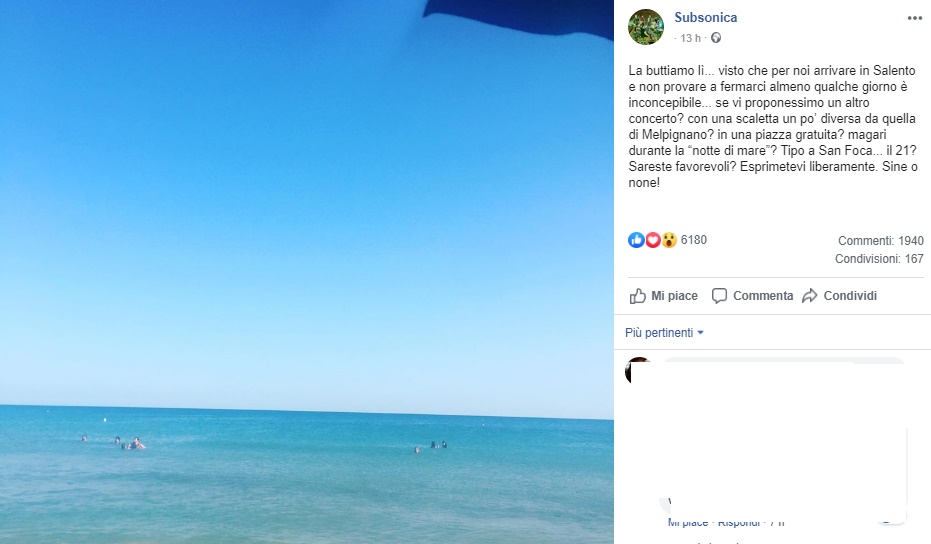 LECCE- Lì dove l’emozione è sempre più grande, lì dove ritrovano ogni volta casa. Sì i Subsonica vogliono omaggiare il Salento, che nel 2000 regalò loro una serata memorabile a Torre Sant’Andrea… Hanno deciso di farlo dopo la tappa a Melpignano, lanciando un appello su Facebook in cui hanno proposto un concerto gratuito, magari per il prossimo 21 agosto a San Foca.