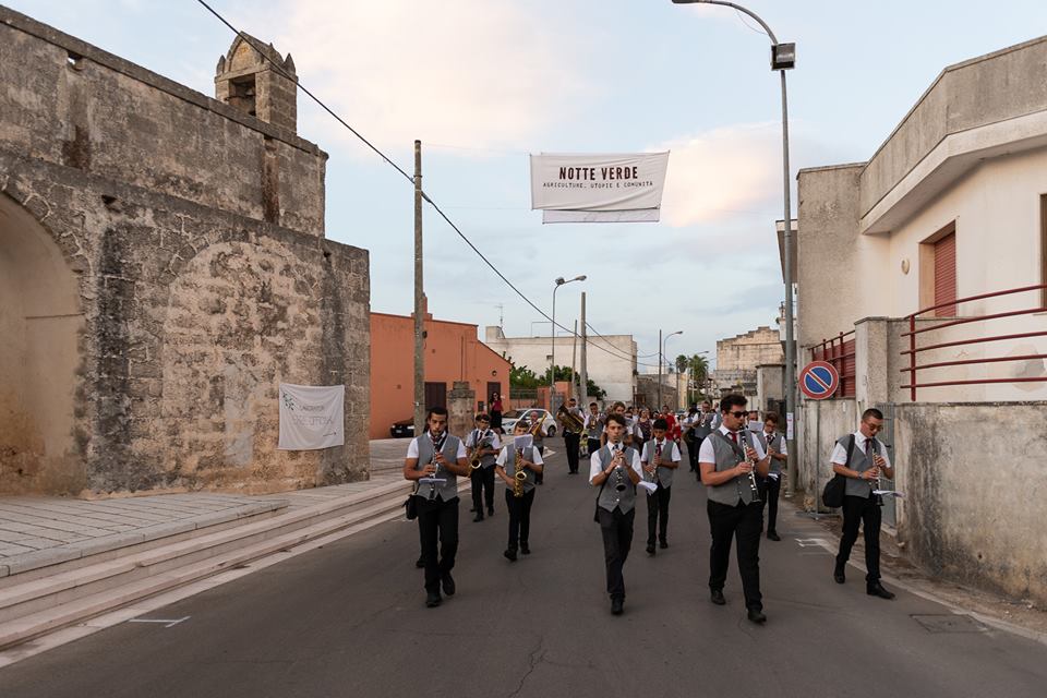 Per sensibilizzare sul tema, ancora, il 31 agosto è previsto “Il cibo al buio”, degustazione sensoriale di cibo a km0 bendati, a cura di A.S.Cu.S.-Unione Italiana Ciechi Lecce, squadra di calcio a 5 per non vedenti assoluti (in 1° vico don Sturzo, per prenotarsi: 320/7216765). Fiore all’occhiello della Notte Verde, poi, è la sezione “La terra che cura” (in via Manara), che racchiude e valorizza le esperienze di agricoltura sociale con mostre, bioconvivio, percorsi sensoriali, con la presenza de L’Adelfia, Harka, Swim, Fondazione Div.ergo-Onlus, Trullo sociale, Coltiva Te Stesso (Centro Diurno – C.S.M. Campi S.na ASL Lecce). Quest’ultima realtà promuoverà il 31 agosto la “Biblioteca umana sulla panchina sensoriale”, che ospita il poeta Franco Arminio e tanti altri: Antonio e Lino Rollo, Marco Fantuzzi, Chiara Idrusa Scrimieri, Stefano Spagnulo, Angelo Fersini.
