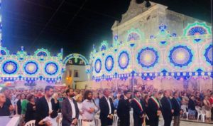 Il santuario resta infatti lo spazio scenico di riferimento della festa con un continuo via vai di persone che entrano nel tempio per salutare la statua della Madonna a cui sono state consegnate le chiavi della cittadina da parte del Primo Cittadino Totò Sales.