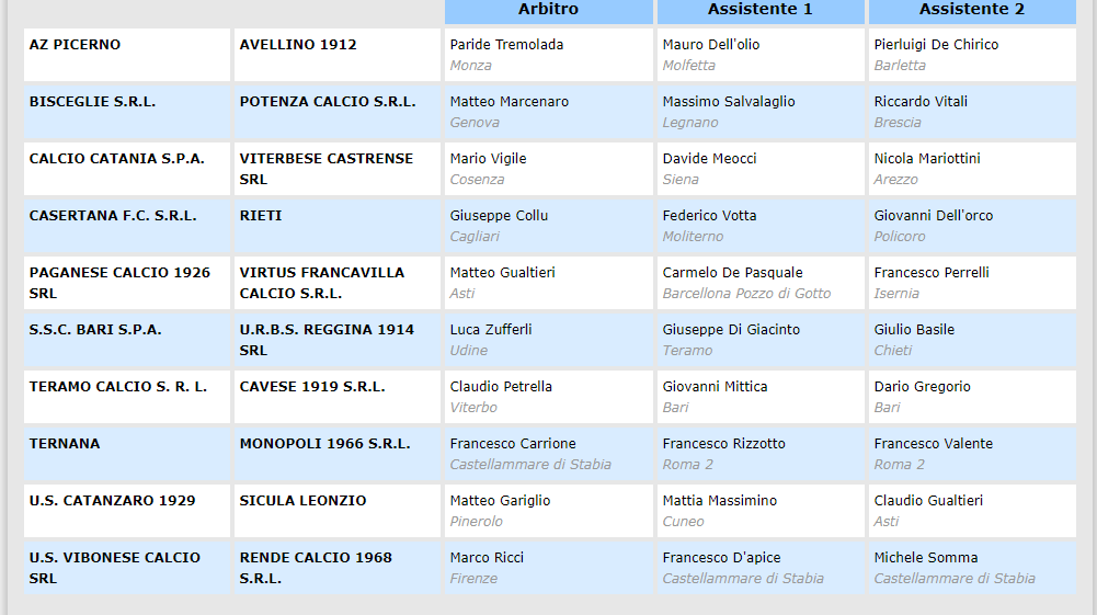 Paganese-V.Francavilla sarà diretta dal sig. Gualtieri di Asti