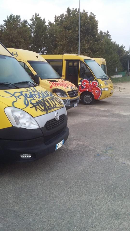 Succede a Nardò. «Stamattina – ha spiegato il primo cittadino Pippi Mellone – autisti, accompagnatori, piccoli scolari e famiglie si sono svegliati con una brutta sorpresa. Nella notte alcuni vandali si sono introdotti nel parcheggio degli scuolabus di via Falcone e Borsellino, imbrattandoli. Ovviamente i responsabili verranno assicurati alla giustizia grazie alle telecamere di sorveglianza da noi installate».