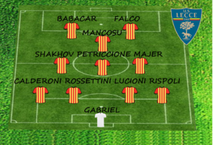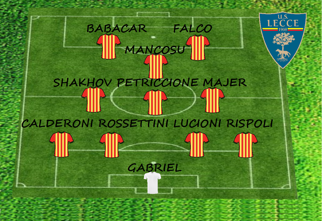 LECCE (4-3-1-2): Gabriel; Rispoli, Lucioni, Rossettini, Calderoni; Shakov, Petriccione, Majer; Mancosu; Falco, Babacar. Allenatore: Liverani.