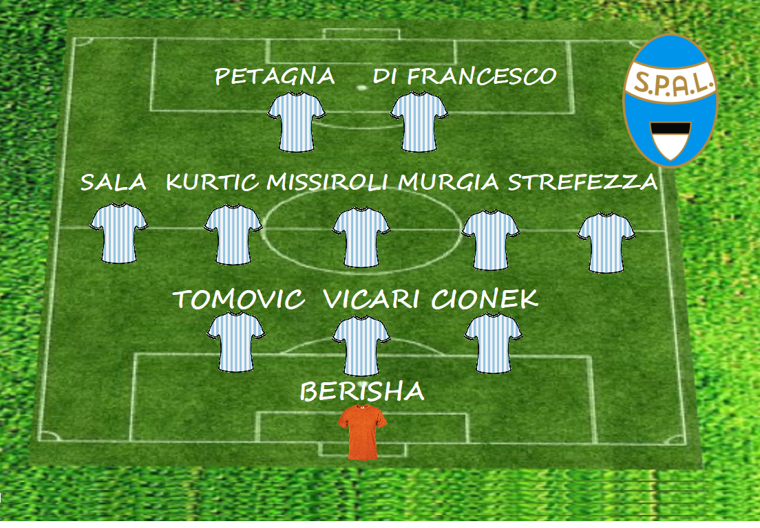 SPAL (3-5-2): Berisha; Cionek, Vicari, Tomovic; Strefezza, Murgia, Missiroli, Kurtic, Sala; Di Francesco, Petagna. Allenatore: Semplici.