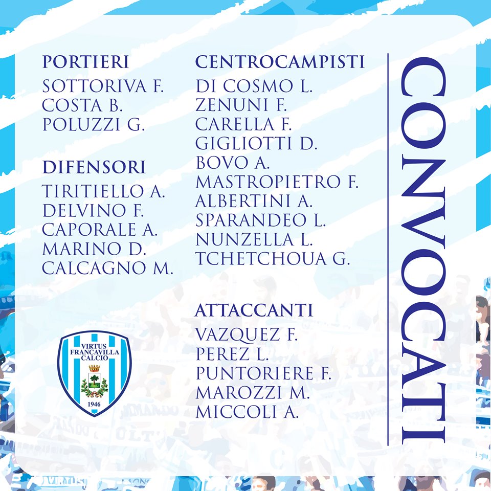 Inoltre ha convocato 23 calciatori che sono i portieri Sottoriva, Costa, Poluzzi; i difensori Tiritiello, Delvino, Caporale, Marino, Calcagno; i centrocampisti Di Cosmo, Zenuni, Carella, Gigliotti, Bovo, Mastropietro, Albertini, Sparandeo, Nunzella e Tchetchoua; e gli attaccanti Vazquez, Perez, Puntoriere, Miccoli, Marozzi.