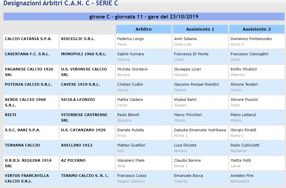 V.Francavilla-Teramo al sig. Cosso. Ecco tutte le designazioni del Girone C di serie C