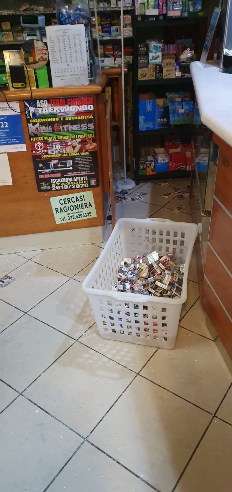 Sul posto, chiamato dalla sala operativa, è giunto il proprietario che, seppur affranto, ha comunque potuto constatare che la merce era rimasta nel suo tabacchino.