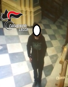 SCORRANO- Le telecamere installate nella chiesa madre hanno immortalato il suo volto e così è stato incastrato il presunto ladro del furto sacrilego consumato a Scorrano l’11 novembre scorso. Si tratta di un trentenne di Gagliano del Capo, già noto alle forze dell’ordine per reati contro il patrimonio.
