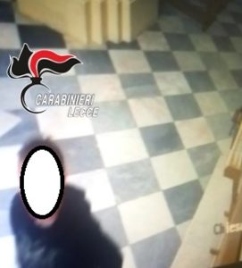 L’occhio elettronico lo aveva immortalato mentre, dopo aver forzato la porta di ingresso, sottraeva circa 150 euro in contanti dalla cassetta delle offerte. Poi ha rubato una catenina in oro con l’effige della Madonna normalmente utilizzata per adornare la statua di Santa Domenica, patrona di Scorrano, durante i noti festeggiamenti. Infine, l’uomo aveva anche orinato sull’altare principale.