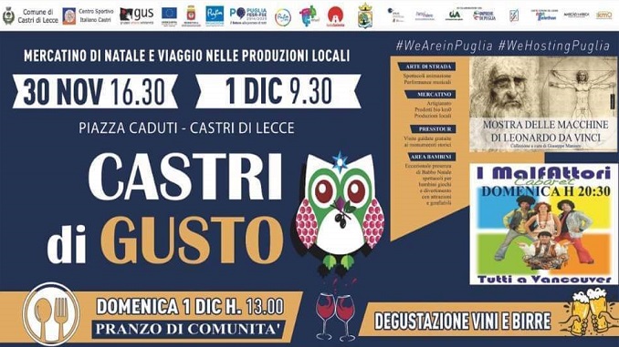 CASTRÌ – Sabato 30 novembre e domenica 1 dicembre 2019 in Piazza Caduti a Castri di Lecce si terrà la quarta edizione di Castri di Gusto.
