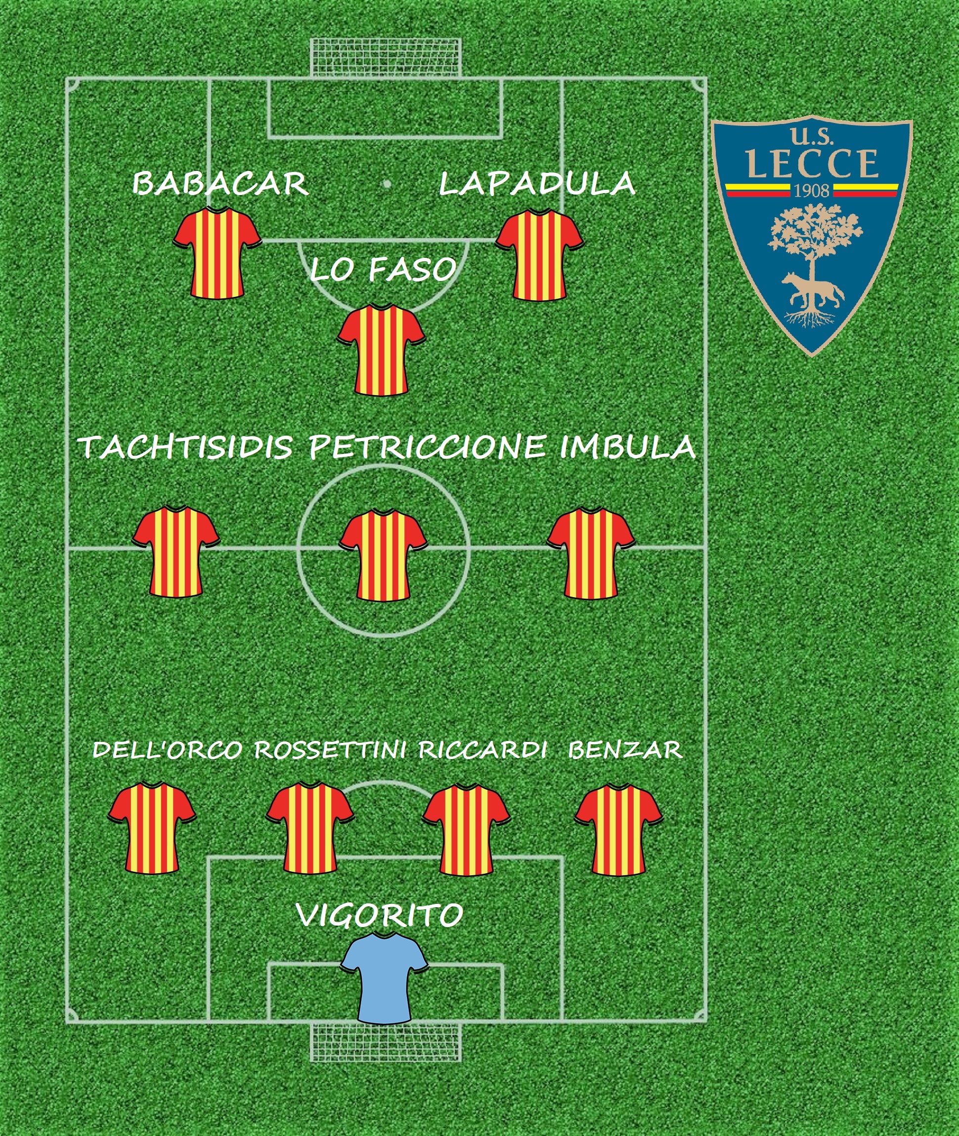 LECCE (4-3-1-2): Vigorito; Benzar, Riccardi, Rossettini, Dell’Orco; Imbula, Petriccione, Tachtisidis; Lo Faso; Lapadula, Babacar. Allenatore: Liverani.