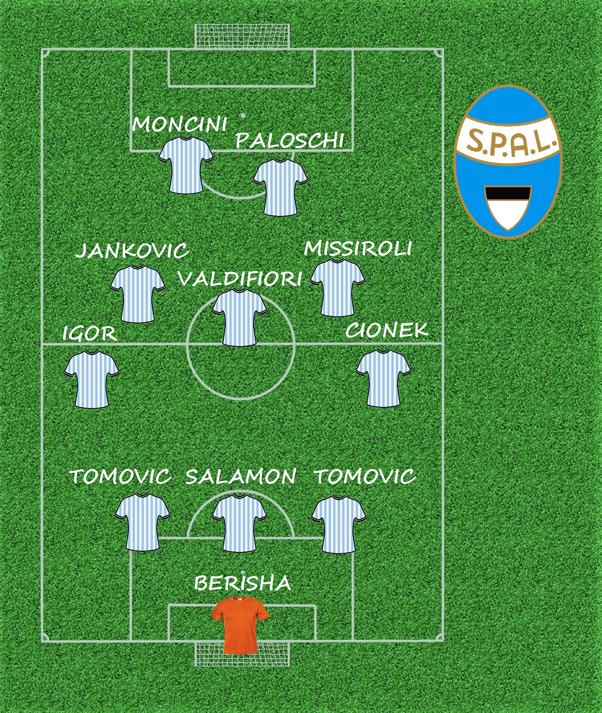 SPAL (3-5-2): Berisha; Tomovic, Salamon, Felipe; Cionek, Missiroli, Valdifiori, Jankovic, Igor; Paloschi, Moncini. Allenatore: Semplici.