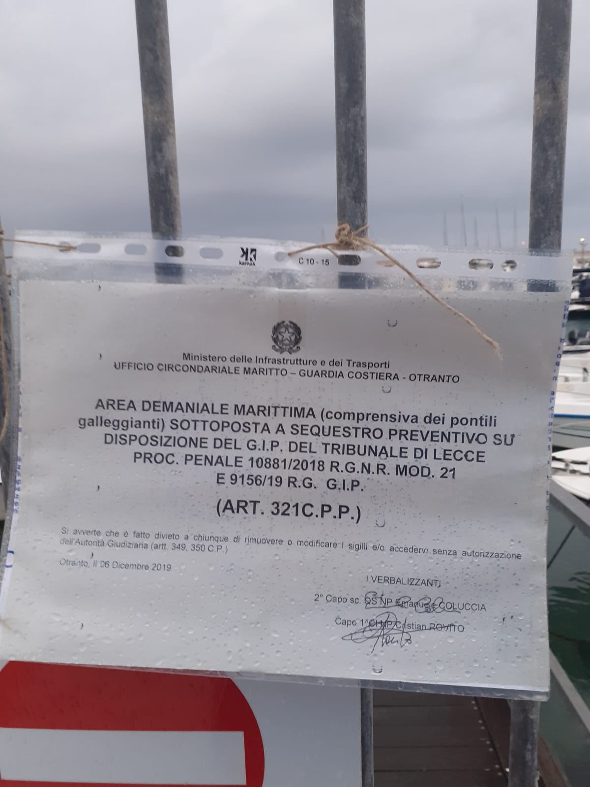 OTRANTO – Sono stati sequestrati i pontili di Otranto, al centro da mesi di una vera e propria guerra tra istituzioni. I sigilli sono stati apposti intorno alle 16,00 dalla Capitaneria di Porto, sequestrata anche tutta l’area demaniale del porto interno. L’infrastruttura, realizzata attraverso autorizzazioni stagionali, avrebbe dovuto essere smontata da metà novembre, come previsto dalla sentenza del Consiglio di Stato, che ha accolto le ragioni della Soprintendenza, bocciando quelle del Comune di Otranto. I pontili sono stati al centro di un braccio di ferro e sono oggetto di un nuovo progetto con il quale il Comune sta cercando di mantenerli in piedi. Nell’ultima conferenza dei servizi di qualche giorno fa, però, la Soprintendenza ha confermato la sua opposizione.