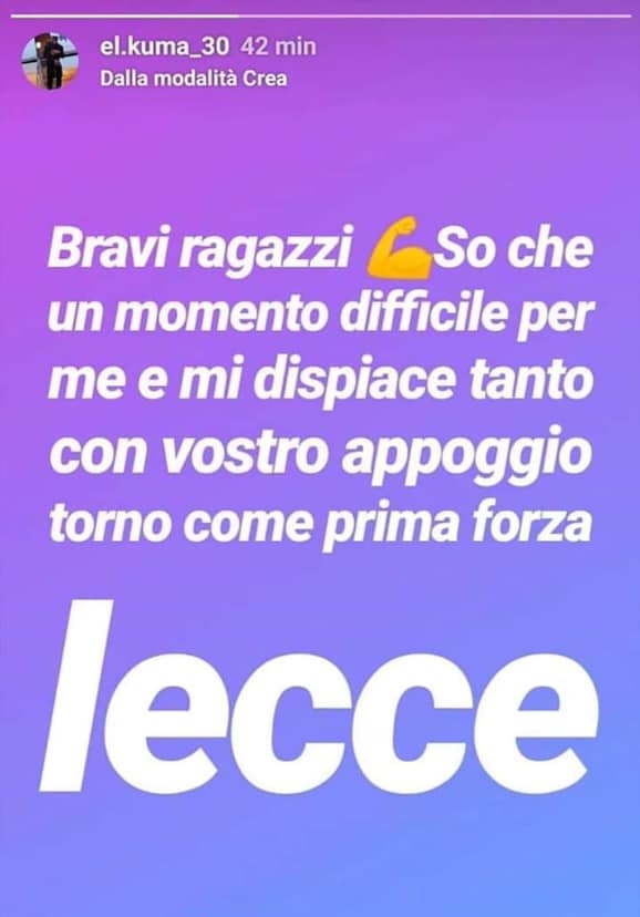È in difficoltà il ragazzo, non si nasconde, ne è cosciente e il suo post su instagram sembra quasi uno sfogo, un voler chiedere scusa a tutti per quello che poteva essere ma non è stato.