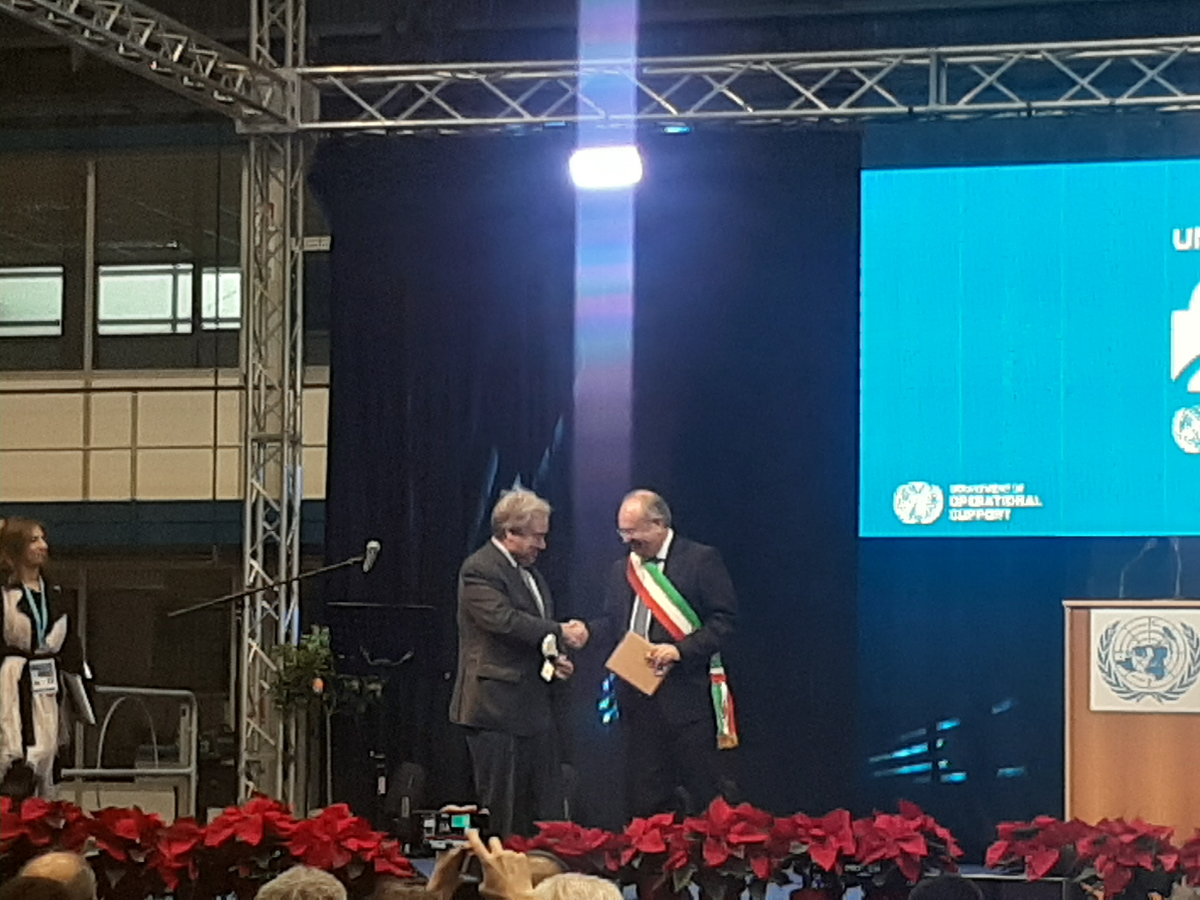 C’è orgoglio nell’essere la città italiana candidata a ospitare un centro per tecnologie ambientali da usare qui e nelle missioni internazionali, dopo aver pagato un caro prezzo in quest’ambito. Questo il cuore dell’intervento del sindaco Riccardo Rossi, che ha consegnato a Guterres le chiavi della città.