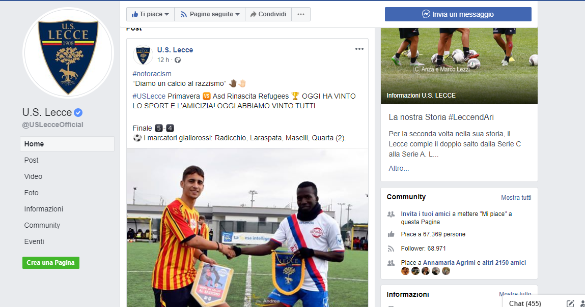 Da segnalare la bella iniziativa della squadra Primavera che “ha dato un calcio al razzismo” giocando l’amichevole con l’Asd Rinascita Refugees, che è finita 5 a 4 per i giallorossi ma come si legge sulla pagina ufficiale della società di Via Col. Costadura: