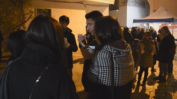 SOLETO – Il borgo di Soleto si è riempito di centinaia di visitatori, che lo hanno attraversato ballando al ritmo incendiario di “Papa Chango” nella sfida musicale con “Io Te e Puccia”, ma anche sulle note degli Swing Garage con special guest Lorenzo Primiceri Dj, di Alessio Colì Band e DoMiSoul. Ad animare la serata più palcoscenici pieni di straordinari musicisti tra le vie della città. “Le mura in festa 2019”, anche in una delle giornate più fredde di dicembre, sono l’ennesimo successo del Comune di Soleto e dell’Agenzia Mood. A riscaldare i visitatori festanti il miglior vino del Barocco Wine Music: ce n’era per tutti i gusti. Vini di alta qualità, bombette, formaggi tipici e una serie di prodotti salentini hanno deliziato chi ha scelto di trascorrere un Santo Stefano unico, tra storia, arte, tradizione, musica, enogastronomia e divertimento. Tutti in fila per percorrere il lungo itinerario che si apre dalla Porta di San Vito e prosegue per tutto il centro antico della cittadina grika, fra le caratteristiche vie del borgo affollate dai tantissimi visitatori che s’incrociano tra palazzi e stemmi di antichi casati. Non manca nulla per riscaldarsi, nemmeno le caldarroste. Il cuore Soleto ha abbracciato tutti e ha dimostrato che è possibile vivere il Salento da turisti 365 giorni all’anno.