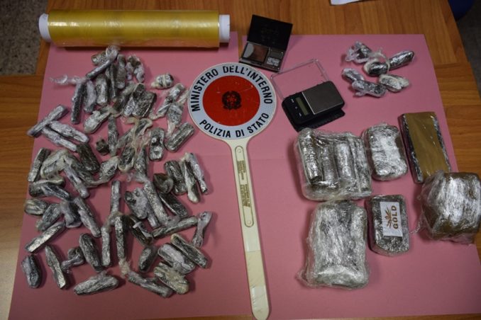 La perquisizione è stata estesa anche all’abitazione dei genitori, da dove l’uomo era passato poco prima di incontrarsi con il suo acquirente, e qui, all’interno di un armadio, è stato torvato uno zainetto nel quale c’ erano 13 panetti di hashish per un peso complessivo di grammi 1200 circa ed altri 63 grammi circa, suddivisi in sei dosi pronte all’uso. Trovati e sequestrati inoltre due bilancini elettronici e un rotolo di cellophane trasparente per alimenti.