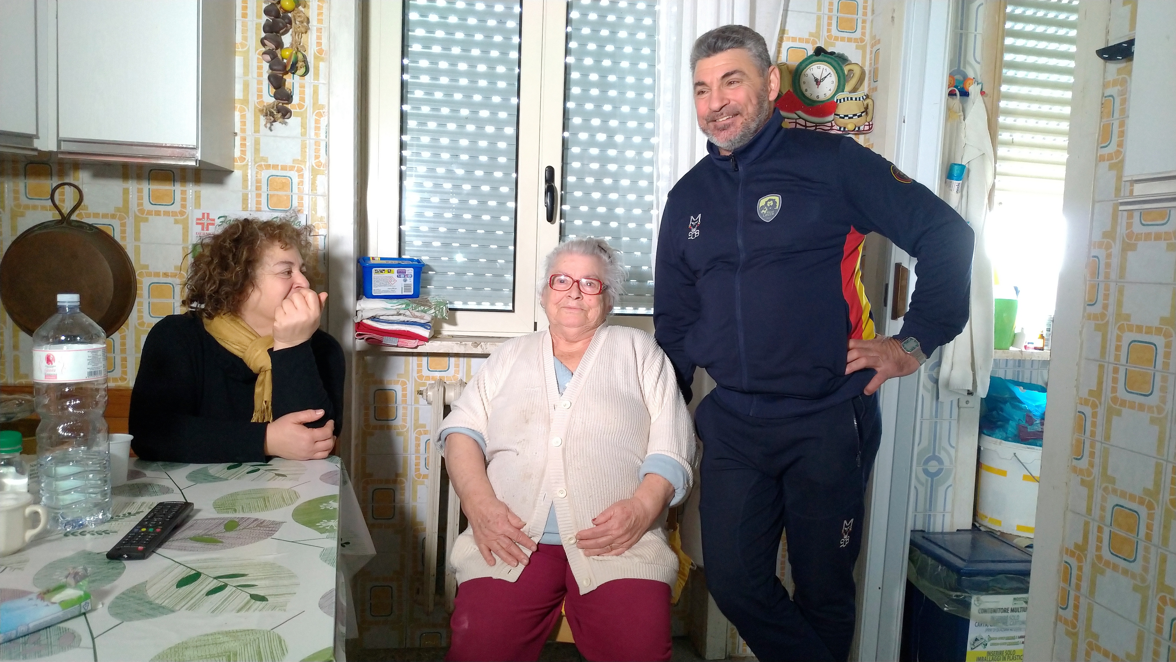 LECCE – Dietro la porta di ogni casa c’è un mondo, c’è la storia di famiglie nuove o già numerosissime e con tanto da raccontare. E “casa” dovrebbe essere un posto sicuro, un rifugio in cui non temere nulla. Anche la più umile dimora dovrebbe garantire questo. Ma qui, in via Bari al civico 48, a Lecce, dietro la porta che si apre suonando il campanello della famiglia di Emilio Sergio, c’è davvero una lunga e bella storia: Emilio e Cesira sono sposati da 60 anni -“E.. ma quante ne ho passate” racconta lei, hanno 28 pronipoti, avevano sei figli, una è scomparsa troppo presto due anni fa. Una bella storia, dicevamo, ma in questo appartamento al quinto piano di una palazzina cosiddetta “popolare” non c’è la sicurezza. Proprio Emilio, il capofamiglia, è allettato da tanto tempo, nella sua stanza che -come accade quando in casa c’è una persona da accudire- sembra la camera di un ospedale, piena di medicine e di tutto l’occorrente per assistere giorno e notte chi ci dorme. Ma qui è come stare all’aperto: guardate questa finestra: è rotta, marcia, i figli l’hanno rattoppata come potevano con traverse, panni e nastro adesivo, ma non basta. Vi passano freddo, vento e pioggia. E la situazione è questa da sette anni! Il resto della casa non è da meno, ma Antonio, uno dei figli di Emilio e Cesira, chiede che almeno la stanza di suo padre sia sistemata, ora è insalubre.