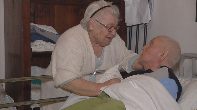 Una bella storia, dicevamo, ma in questo appartamento al quinto piano di una palazzina cosiddetta “popolare” non c’è la sicurezza. Proprio Emilio, il capofamiglia, è allettato da tanto tempo, nella sua stanza che -come accade quando in casa c’è una persona da accudire- sembra la camera di un ospedale, piena di medicine e di tutto l’occorrente per assistere giorno e notte chi ci dorme. Ma qui è come stare all’aperto: guardate questa finestra: è rotta, marcia, i figli l’hanno rattoppata come potevano con traverse, panni e nastro adesivo, ma non basta. Vi passano freddo, vento e pioggia. E la situazione è questa da sette anni! Il resto della casa non è da meno, ma Antonio, uno dei figli di Emilio e Cesira, chiede che almeno la stanza di suo padre sia sistemata, ora è insalubre.