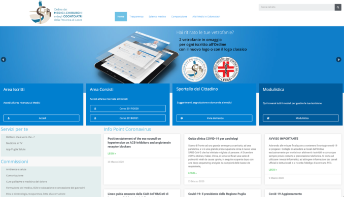 Un sito rinnovato che si sarebbe voluto presentare in altra maniera ma è ugualmente online per garantire un servizio per tutti, tanto da avere anche una parte pubblica per offrire un vero e proprio “Sportello per i cittadini” . L’invito da parte del Presidente dell’ordine, Dott. De Giorgi, e del responsabile della comunicazione, Dott. Rocco, parte proprio dal momento che stiamo vivendo: “visto che siamo costretti, quando non lavoriamo, a stare a casa ed il sito non è ancora rodato al meglio, tanto che potremmo definirlo come ancora “work in progress”, vi invitiamo caldamente a navigarci ed a dirci le vostre impressioni così da costruirlo insieme! Il sito è strutturato in una parte pubblica ed una riservata agli iscritti con rubriche e contenuti riservati ed a tutti gli associati, dell’ordine dei medici di Lecce e provincia, l’invito di iscriversi nella sezione a loro riservata per impressioni, critiche e suggerimenti scrivendo a comunicazione@ordinemedicilecce.it”.