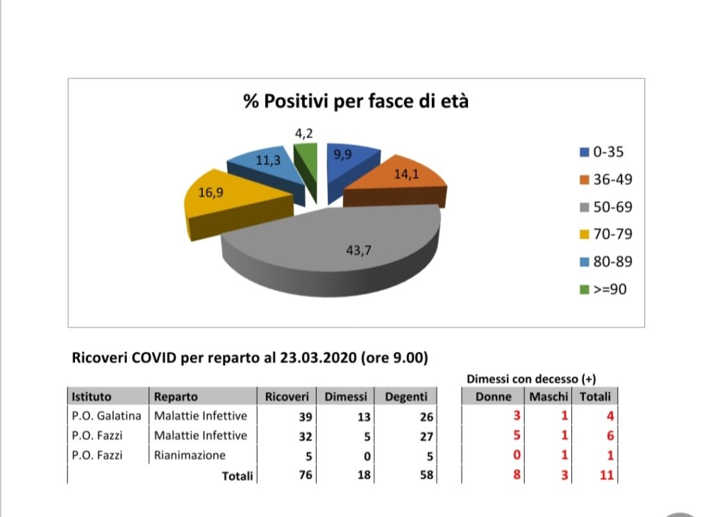 Per restare in tema sanità, non va meglio nel Tarantino. Nell’ospedale San Pio di Castellaneta, dopo la positività di un medico che è andato a lavoro nonostante avesse sintomi, sono stati eseguiti 500 tamponi. I risultati avuti sui primi 200 confermano la positività di 17 persone. Ne ha dato notizia il sindaco Giovanni Gugliotti, anche lui sottoposto a test, risultato negativo.
