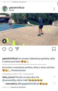 E subito è arrivato il commento del compagno di reparto Lucioni: “Perché vorresti dire che Sassanelli (il preparatore dei portieri del Lecce) calcia male?” seguito da tanti sorrisi e dal like del collega di guantoni Marco Bleve.