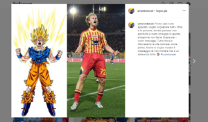 E partendo dalla foto dell’esultanza dopo il gol segnato ai granata ha affiancato l’immagine di Goku, trasformato in Super Saiyan, protagonista del manga giapponese Dragon Ball ed ha scritto: