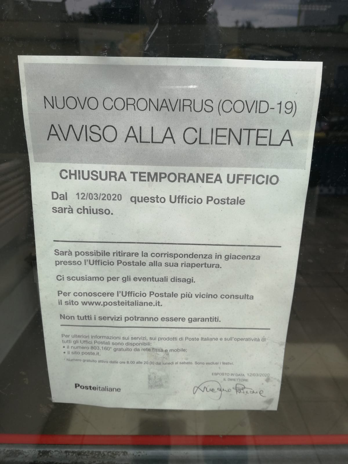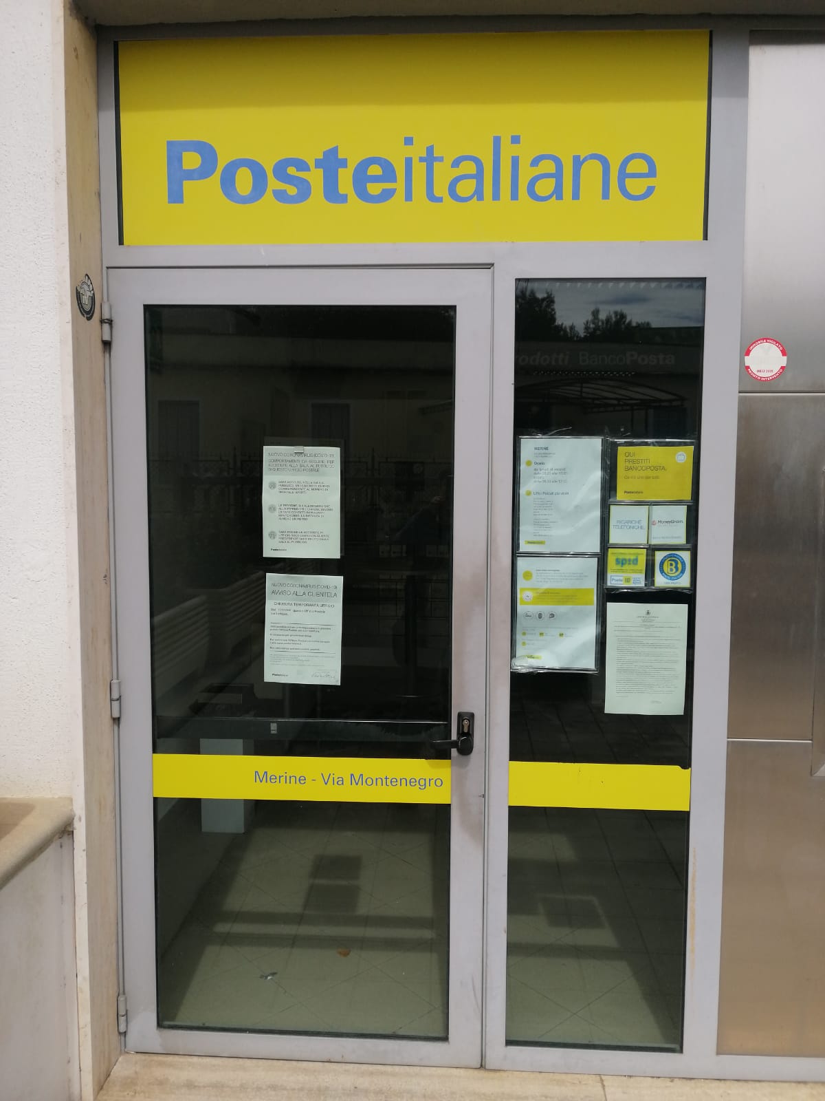 MERINE- Poste Italiane decide di chiudere gli uffici Postali delle frazioni ed attuare orari ridotti negli altri in seguito all’epidemia di Coronavirus. Chiuse temporaneamente, quindi le filiali minori e limitata a soli tre giorni l’apertura degli uffici nei comuni Capoluogo. Accade questo anche a Merine e Lizzanello.