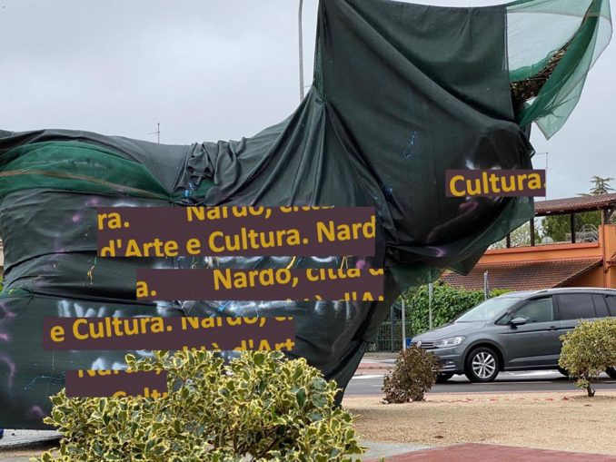 NARDO’- Imbrattato in mattinata con della vernice il telo che ricopriva il “Toro” dell’artista Isaia Zilli, posto sulla nuova rotatoria all’ingresso della città di Nardò. “Un’opera meravigliosa simbolo della città del futuro, dinamica e orgogliosa della sua identità” dice il sindaco Pippi Mellone. La sua inaugurazione è stata rimandata a fine emergenza.