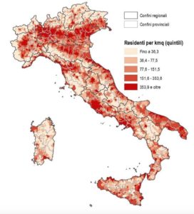 La mappa della densità della popolazione in Italia, pubblicata in questa domenica da Lopalco, “dà una idea abbastanza precisa di quali siano le aree a maggior rischio di circolazione”.