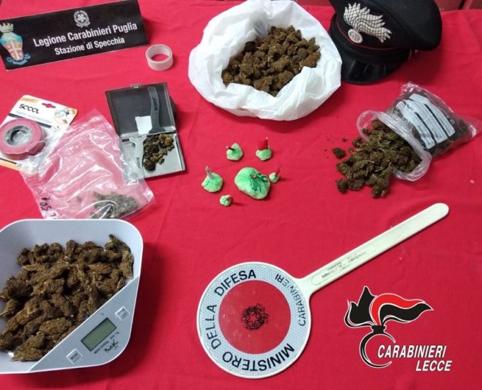 ANDRANO – Era in auto con 55 grammi di marjuana e 35 di cocaina divisa in sei dosi. Bloccato dai Carabinieri di Specchia che hanno esteso la perquisizione nella sua abitazione, trovando altro 180 e 170 grammi di marjuana , per lui sono scattate, inevitabvilmente le manette. In casa di Nadir Frisullo, 27enne di Poggiardo ma residente a Tricase i militari hanno rinvenuto anche un bilancino di precisione, materiale per il confezionamento delle dosi e uno smartphone con sim sul quale si concentra ora l’attenzione degli investigatori