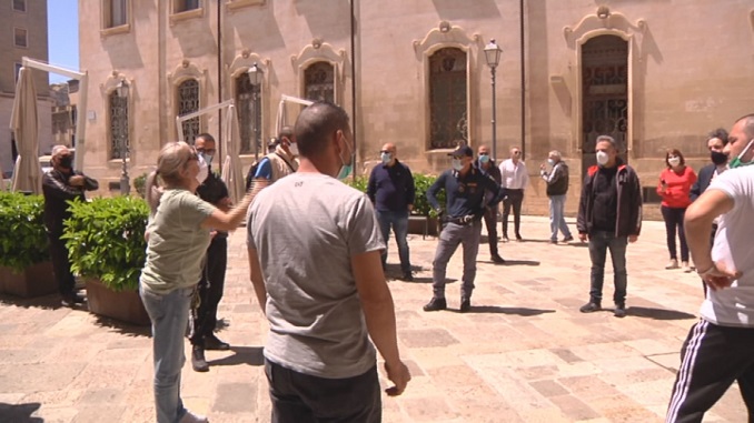 LECCE – Toni accesi, anche a tu per tu, con sindaco e assessore alle attività produttive di Palazzo Carafa che in mattinata hanno dovuto fare i conti, ancora una volta, con il loro malcontento. A protestare sono gli ambulanti itineranti della città di Lecce. Mentre il Comune, con apposito provvedimento, ha sbloccato oggi le attività del settore alimentare dei mercati cittadini (Mercato alimentare di Via Bari, Mercatino delle erbe e mercato di “Campagna Amica” in Piazza Bottazzi), nessuna buona nuova per loro, che hanno postazioni dislocate in città. I commercianti non ci stanno. Con al fianco l’avvocato Francesco D’Agata, nelle scorse ore hanno protestato alle porte della sede del Comune, dopo giorni di pressing su amministrazione e Prefettura, nella speranza di poter tornare al più presto al lavoro.