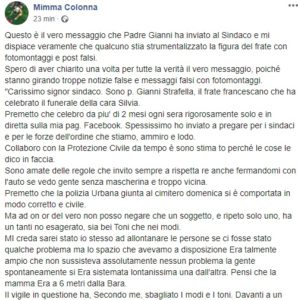 “…Premetto che la polizia Urbana giunta al cimitero domenica si è comportata in modo corretto e civile -scrive-
