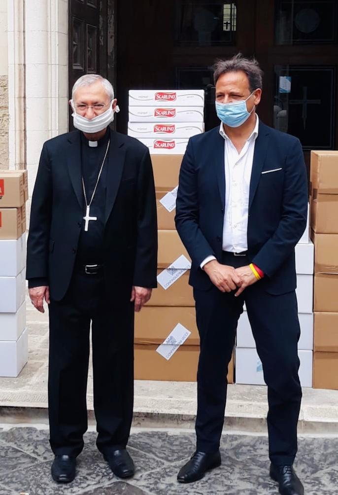 Felice di ricevere un dono oggi più che mai prezioso, l’arcivescovo metropolita, ha accolto , insieme al parroco della Cattedrale, Don Emanuele Ferro, la straordinaria truppa di benefattori che ha portato un bel sorriso dietro le mascherine e due furgoni carichi d’amore pronti a raggingere davvero tutti.
