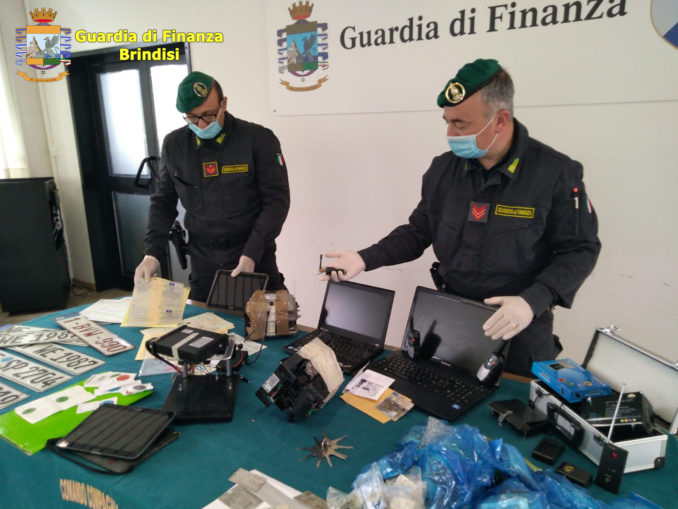 BRINDISI- Questa mattina, i Finanzieri del Comando Provinciale di Brindisi, coordinati dalla locale Procura della Repubblica, hanno dato esecuzione ad un’ordinanza di custodia cautelare, emessa dal Giudice per le Indagini Preliminari, nei confronti di 12 indagati (di cui 6 in carcere e 6 ai domiciliari), nelle province di Brindisi, Foggia, Taranto e Milano. Le indagini hanno disvelato l’esistenza di un’associazione a delinquere, operante su Ceglie Messapica (BR), dedita alla vendita di autovetture usate di provenienza furtiva, la maggior parte delle quali rubate nel Nord Italia.