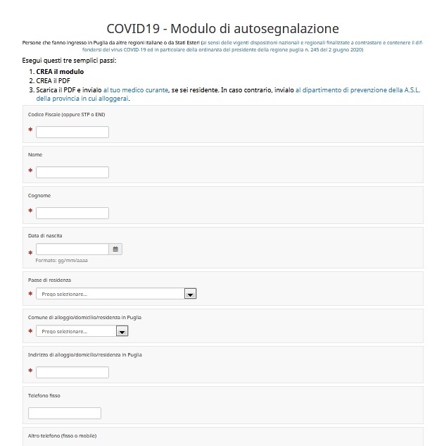 Venite in Puglia o partite dalla Puglia liberamente, dunque, ma scattano gli “Obblighi di segnalazione per l’ingresso delle persone fisiche” nella regione.