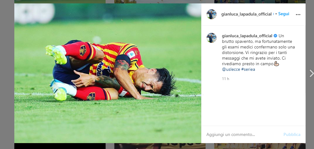 LECCE – Nessun danno importante, nessuna patologia capsulo legamentosa ma soltanto una distorsione di secondo/terzo grado alla caviglia sinistra per Gianluca Lapadula che nella gara col Milan, amaramente persa per 1 a 4 al Via del Mare, è dovuto uscire per infortunio.