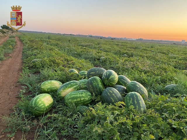 All’interno del veicolo sono state trovate numerose angurie di grossa taglia appena raccolte dalla pianta, per un peso totale di circa 45 quintali. I due fermati, spontaneamente, hanno dichiarato di averle asportate da un terreno in località “Masseria Le Stanzie” in agro di Nardò, dove sono stati rinvenuti altri 20 quintali circa di angurie già recise dalla pianta e pronte per essere caricati sui mezzi.