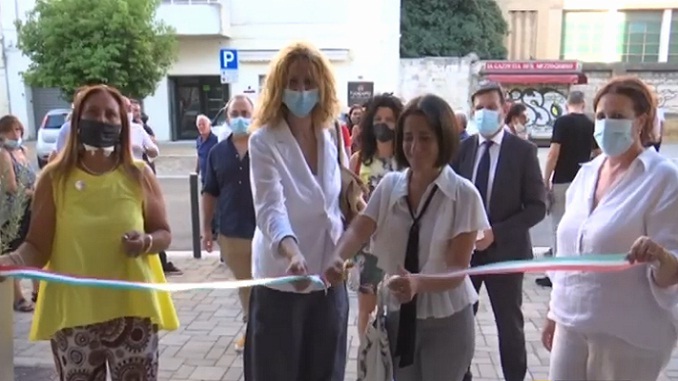 Taglio del nastro insieme a Barbara Lezzi, ai parlamentari Leonardo Donno e Diego De Lorenzis e i candidati alle regionali per la circoscrizione di Lecce Cristian Casili, Antonio Trevisi, Francesca Sodero, Agostino Marottoli, Gabriella Mazzei, Maria Angela Rizzo, Maurizio Casole, Francesco Giannetta, Gabriele D’Agosta e Luigina Toma.