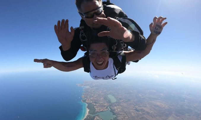 SALENTO- Saltare nel vuoto a 4000 metri d’altezza passando da 0 a 200 km/h in soli 4 secondi richiede un certo coraggio e sangue freddo. Lo sa bene Serena che in occasione dei suoi 30anni ha realizzato il sogno di una vita.