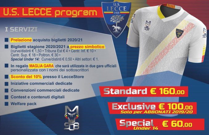 “Aderire al programma che offre ai tifosi una serie di vantaggi dal prezzo simbolico del biglietto a super sconti al Lecce Store e nelle attività commerciali convenzionate. In regalo la maglia con i nomi dei tifosi che hanno aderito all’iniziativa e che verrà utilizzata dai giallorossi in occasione di due gare ufficiali della #SerieBKT