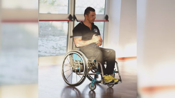 La sua associazione “Mollare Mai” è una associazione sportiva che vuole avvicinare i ragazzi disabili allo sport tramite discipline come l’handbike, easybike, triciclo, palestra/piscina riabilitativa. Si impegna anche nell’insegnamento del buon uso corretto della carrozzina. E lui, Adriano Bolognese , partito dalla sua esperienza personale, insieme all’importantissimo aiuto della moglie Eleonora è riuscito a coinvolgere tantissimi giovani. Oggi lancia il suo appello alle istituzioni, i suoi ragazzi sono senza uno spazio per ritrovarsi: “Stiamo cercando in tutti i modi di trovare dei rimedi per quanto riguarda una palestra per i miei ragazzi, abbiamo la disponibilità di un giorno a settimana nella palestra di Stefano De Giorgi che ringrazio vivamente,ma non abbiamo più la palestra comunale di Serrano, abbiamo cercato in tutti i modi di trovare soluzioni tra Dirigente Scolastico e Comune di Carpignano Salentino ma purtroppo le normative vigenti anti COVID19 non ci permettono di praticare attività motoria e Sportiva per i miei ragazzi disabili….veramente sono un po’ giù di morale, avevamo costruito nel 2019 un qualcosa di straordinario mai visto prima, “aggregazione” “sorrisi” ma anche tanti vantaggi “psicofisici” 30 ragazzi che non vedevano l’ora di praticare le nostre attività. Speriamo con tutto il cuore che le cose possano cambiare, perché altrimenti tutto quello che è stato creato in 3 anni a questa parte andrà in fumo, Istituzioni dateci una mano”.