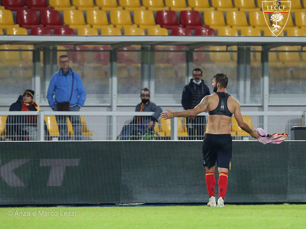 P. Tachtsidis regala la maglia (foto US Lecce Anza e Marco Lezzi)