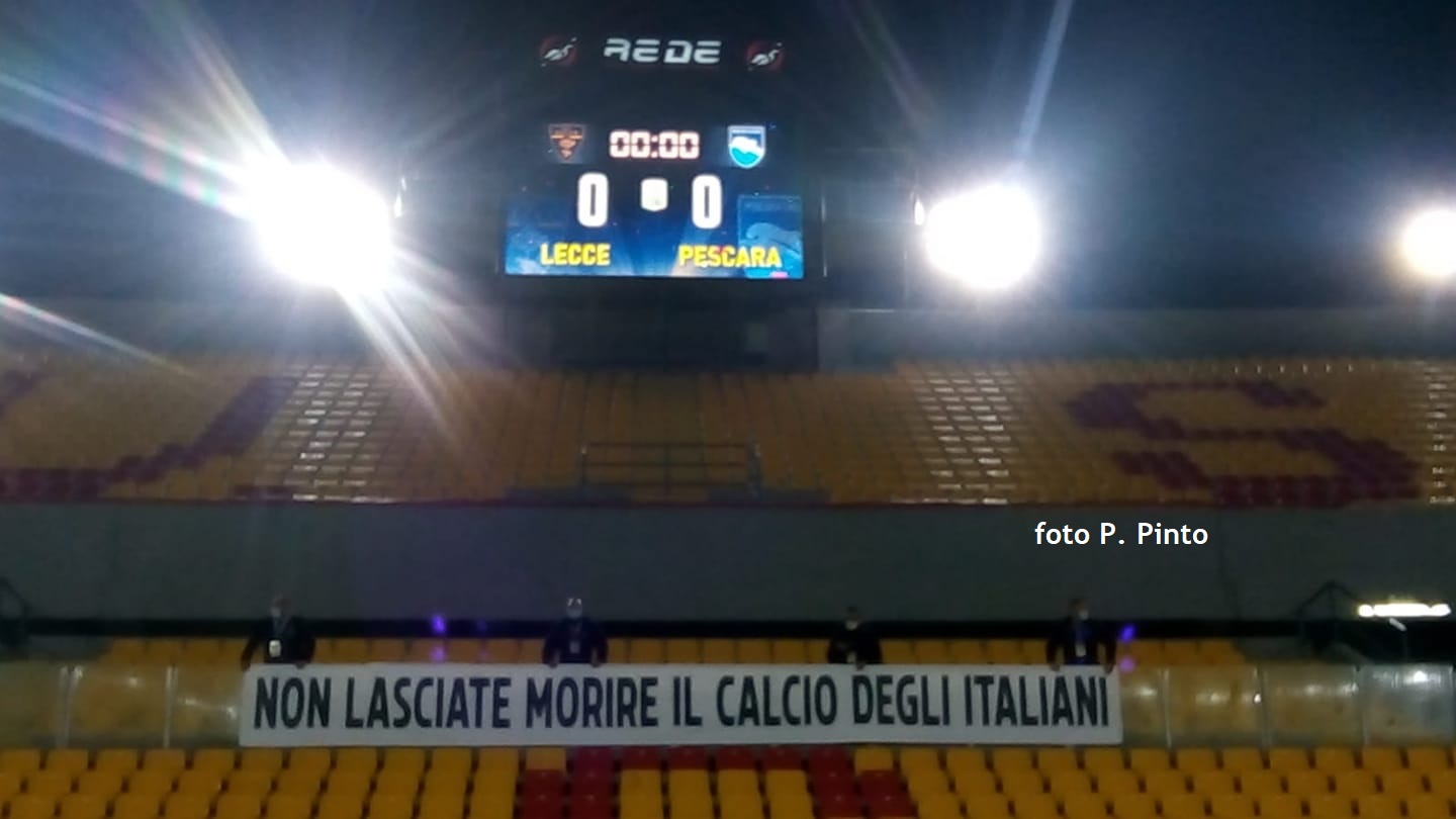 Ed infine l’ultimo fotogramma della serata è per gli spalti vuoti. Nel silenzio più assordante, solo uno striscione, quello dell’iniziativa della Lega B, chiaro, conciso e preciso, rivolto alle istituzioni: “Non lasciate morire il calcio degli italiani”.