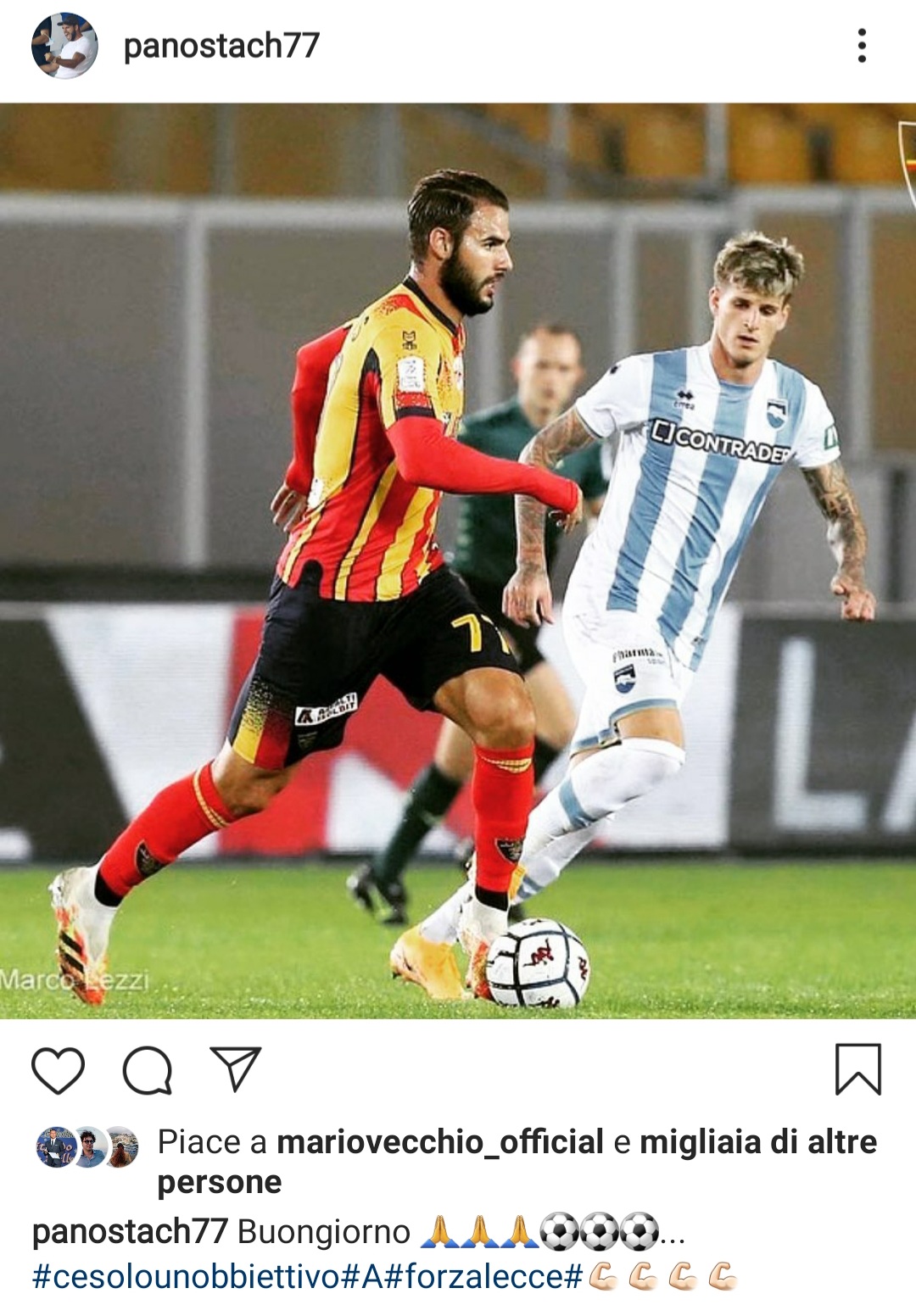 LECCE – In campo e fuori dal campo è tornato più motivato di prima: Panagiotis Tachtsidis vuole una stagione da protagonista con la maglia del “suo” Lecce in serie B. Il greco, dopo il brutto mal di pancia subito “rientrato”, non nasconde l’entusiasmo ritrovato e sul suo profilo di Instagram si esprime così: “Buongiorno, #unsoloobiettivo #A #forzalecce”.