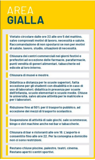 Ma attenzione: dal 21 non sarà consentito lo spostamento tra regioni e a Natale, Santo Stefano e primo gennaio non sarà possibile lasciare il proprio comune.